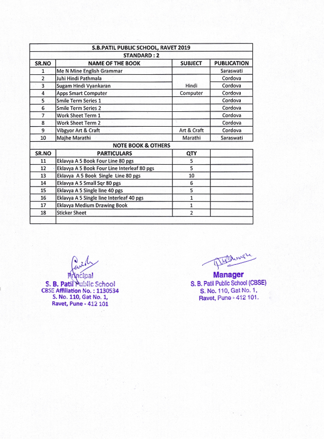 Second Standard Students Book List Of S B Patil School Ravet
